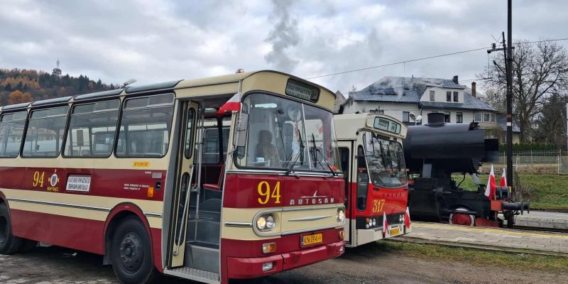 Nasze autobusy Autosan H9-35 #94 i Jelcz M11 #317 dołączyły dziś do jadącego z Nowego Sącza do Krynicy-Zdrój „Pociągu wolności”. Na trasie przez Dolinę Popradu było wiele okazji do wspólnych zdjęć…