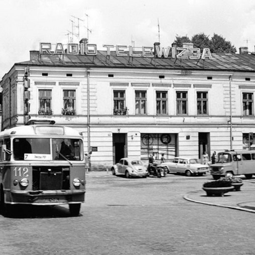 Fotografia: Wojciech Turżański; udostępniona na Galerii LTEK Autobus San H100B #112 opuszcza nowosądecki Rynek 12.07.1978r.
