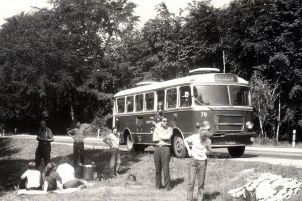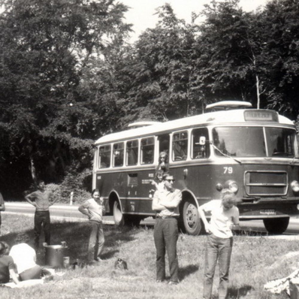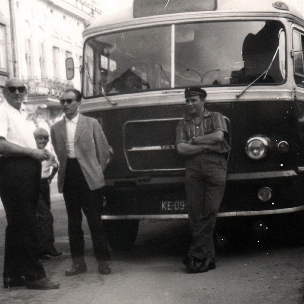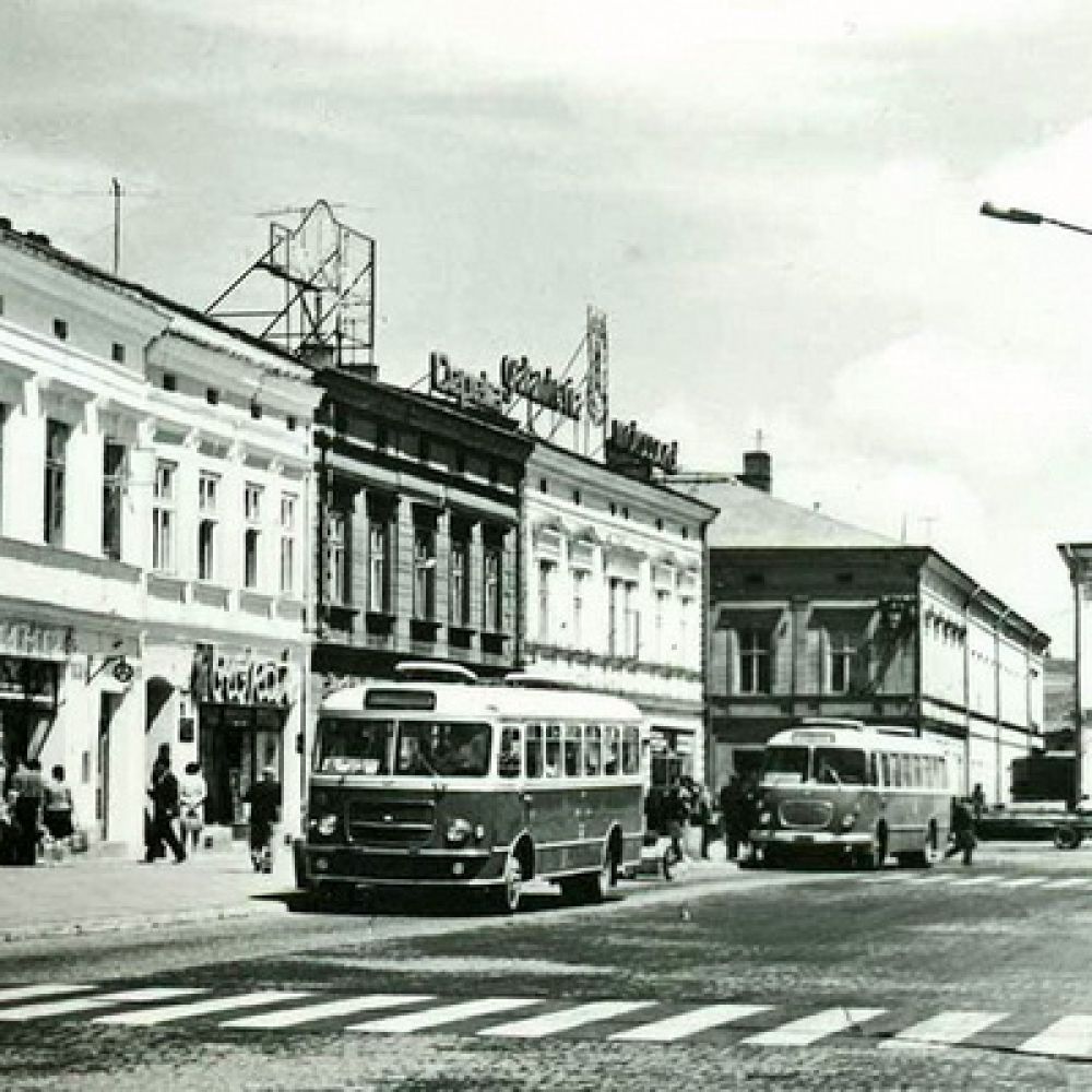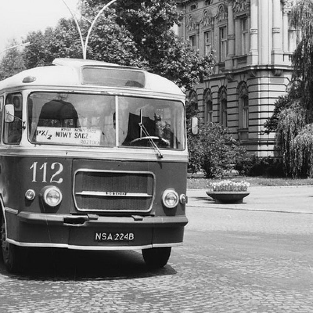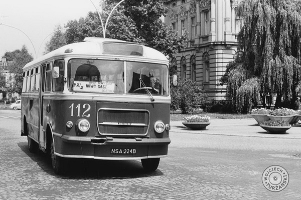 Fotografia: Wojciech Turżański; udostępniona na Galerii LTEK Autobus San H100B #112 wjeżdża na nowosądecki Rynek 9.08.1976r. (zdjęta osłona chodnicy bo Sany miały tendencje do przegrzewania się)