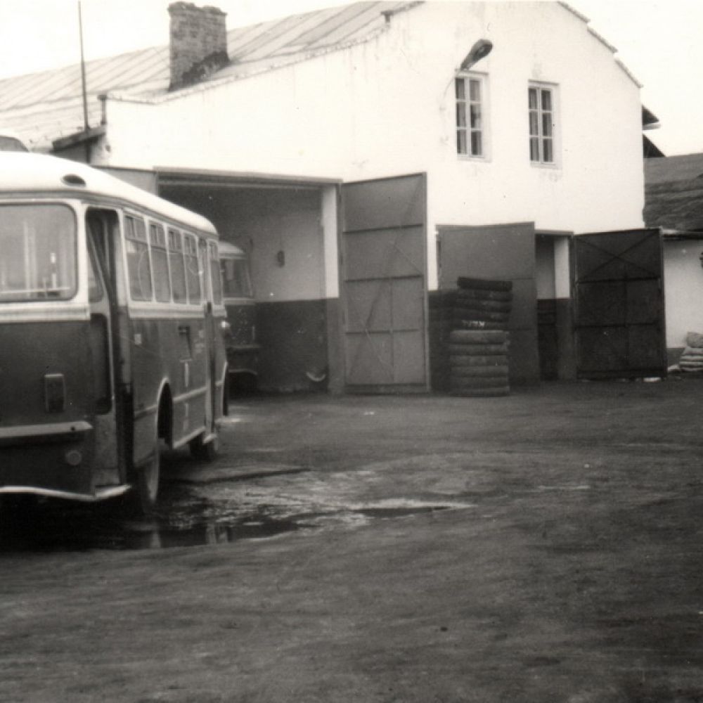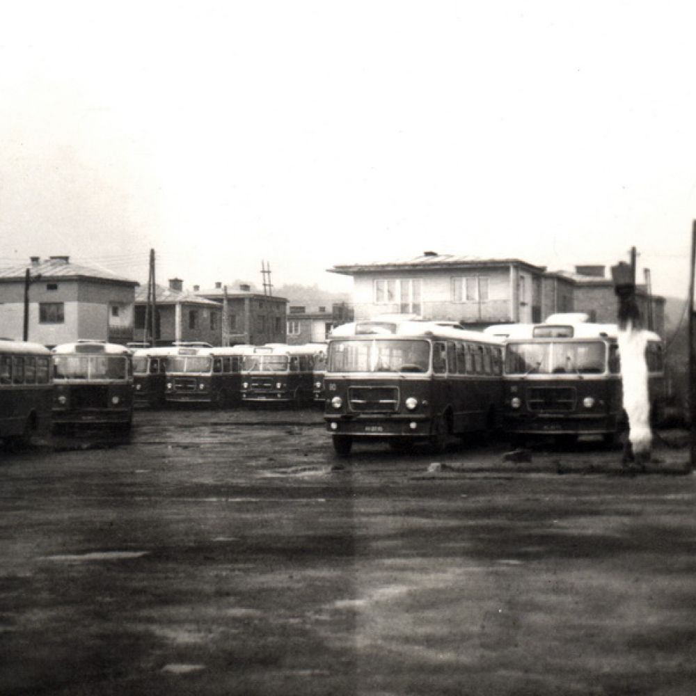 Zdjęcie ze zbiorów MPK Autobusy San H100B na terenie starej zajezdni przy ulicy Naściszowskiej – Nowy Sącz był wtedy miastem Sanów