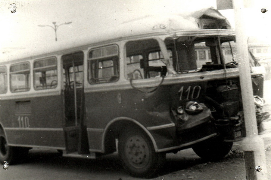 Zdjęcie ze zbiorów MPK Autobus San H100B #110 rozbity w wypadku na zajezdni przy ulicy Wyspiańskiego